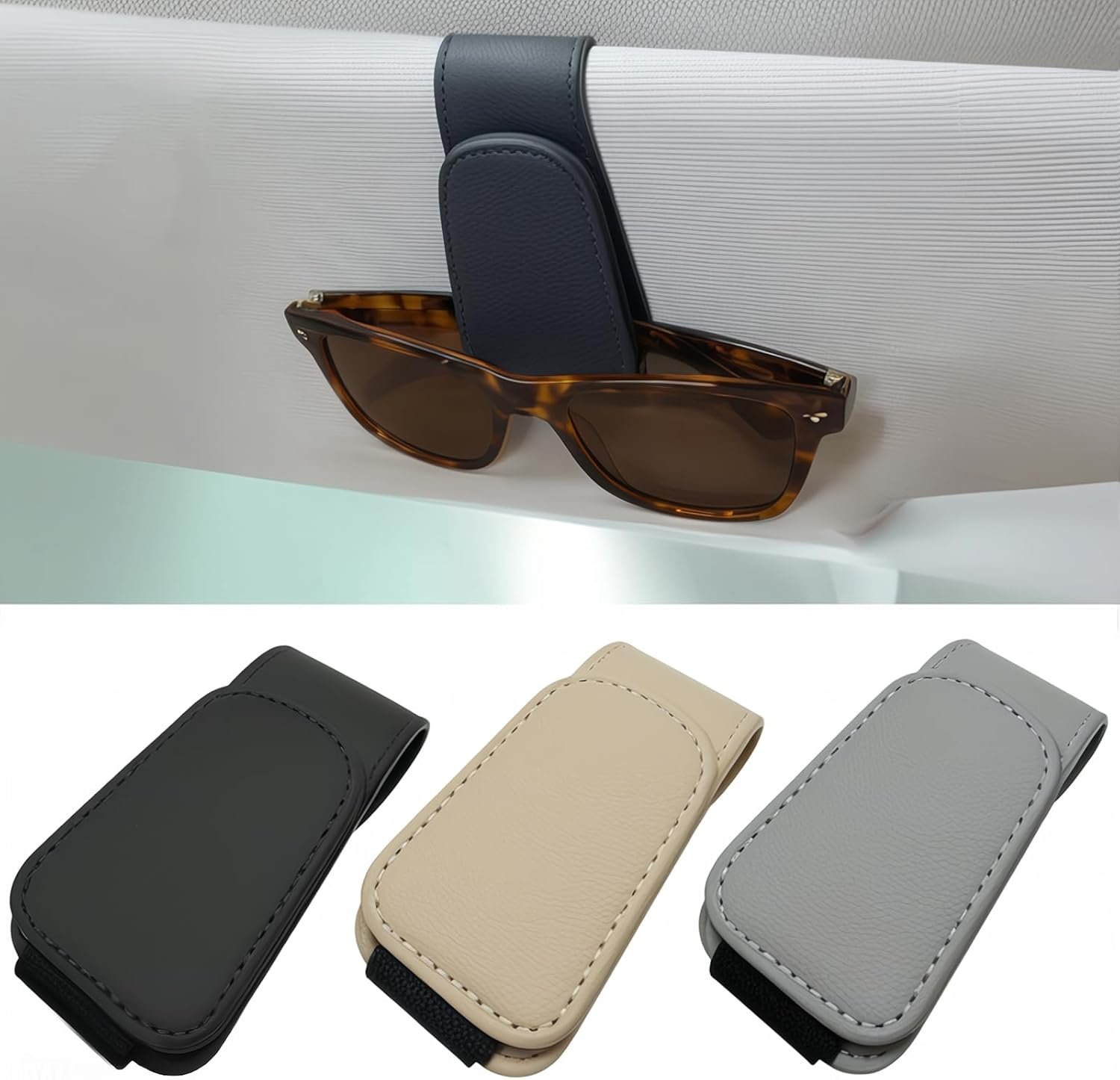 Sunglass Holder for Car Visor – 2 Pack Magnetic Car Glasses Holder Clip, Leather Eyeglass Holder for Car, Universal Vehicle Sunglasses Hanger Eyeglasses Mount, Black